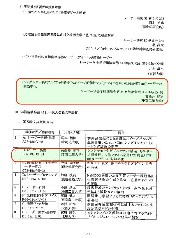 レーザー学会では、関連学術雑誌や会議などを含めた全ての発表の中から